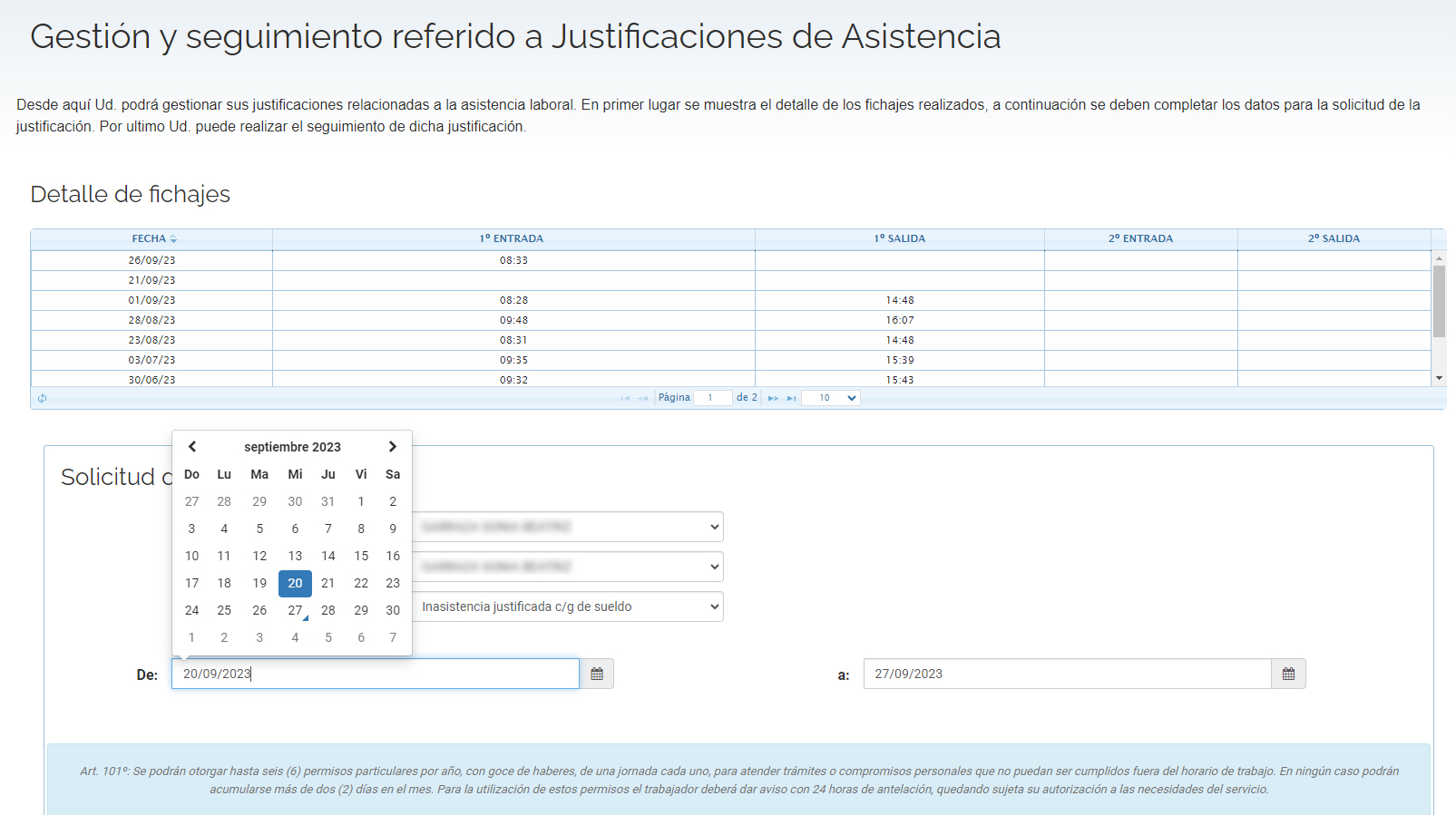Gestión y seguimiento de permisos relacionados a la asistencia laboral en el Sistema de Información